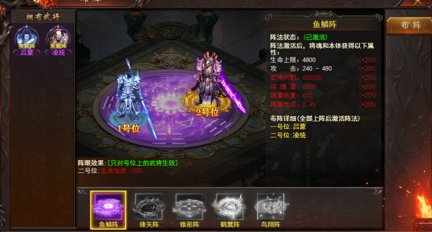 玩家大大们激活了其中任意一个阵法后,便可以在游戏界面的右上角布阵界面中开始布置我们的武将了。